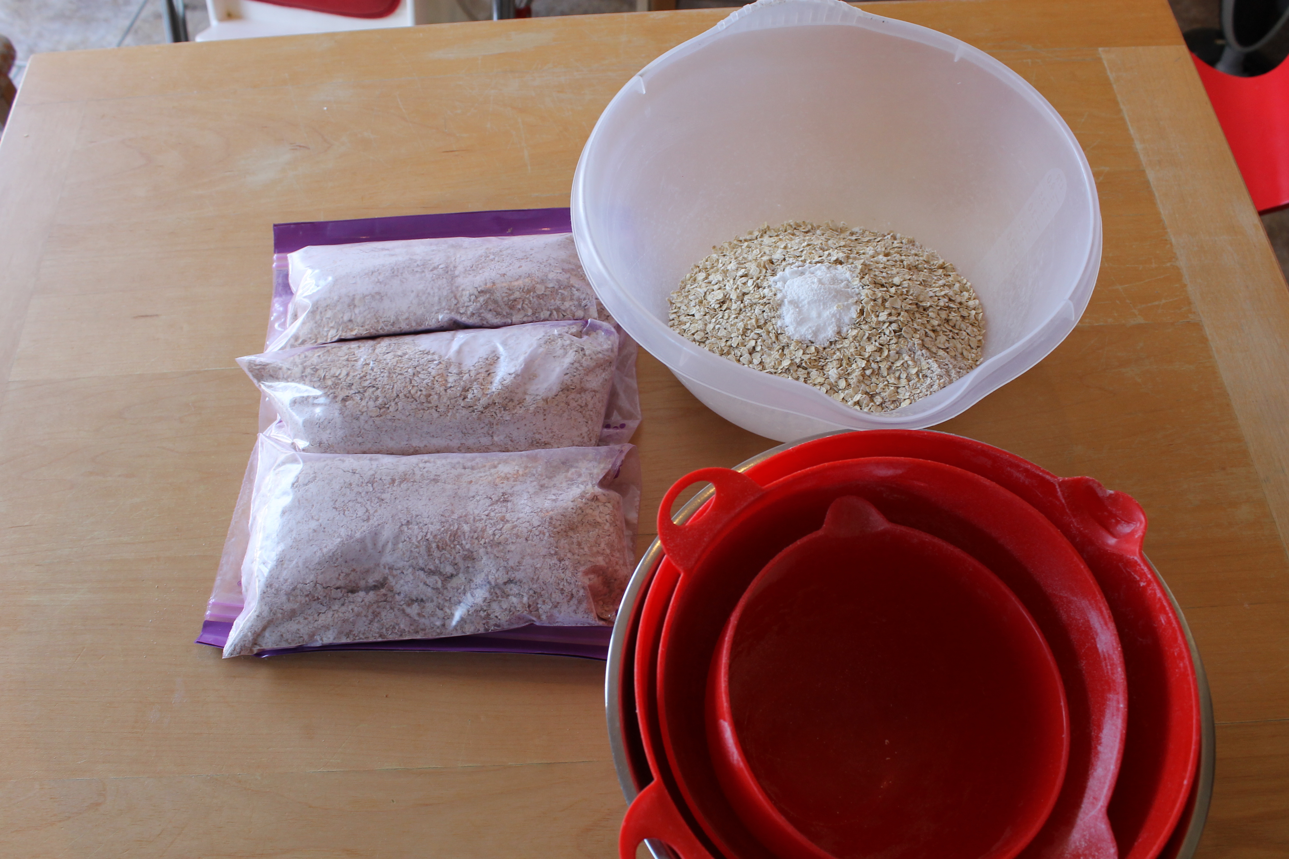 And then when I want to make a loaf, I just take out a bag of the dry ingredients and pour into a bowl, put a tablespoon of molasses and dessert spoon of sunflower oil into a pot and warm a bit to melt, stir in 500ml buttermilk and then add that mix and 2 eggs to the dry ingredients. Super easy!