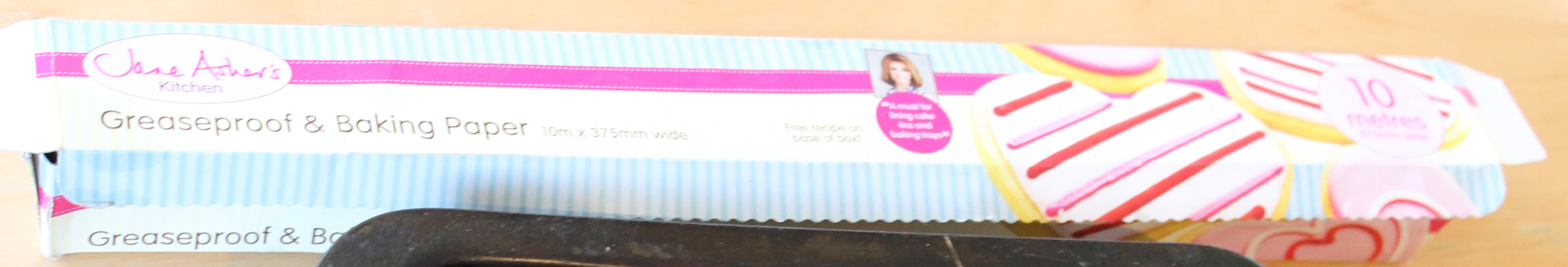 And I line my loaf tin with this magic greaseproof paper. I love it. I found it in Dealz a while back, and it is the only greaseproof paper I’ve used that really is non-stick. I used to spend ages trying to peel greaseproof paper off loafs of bread, homemade pizza bases or cookies that all got stuff to the bottom. And then I found this, and I LOVE love it!